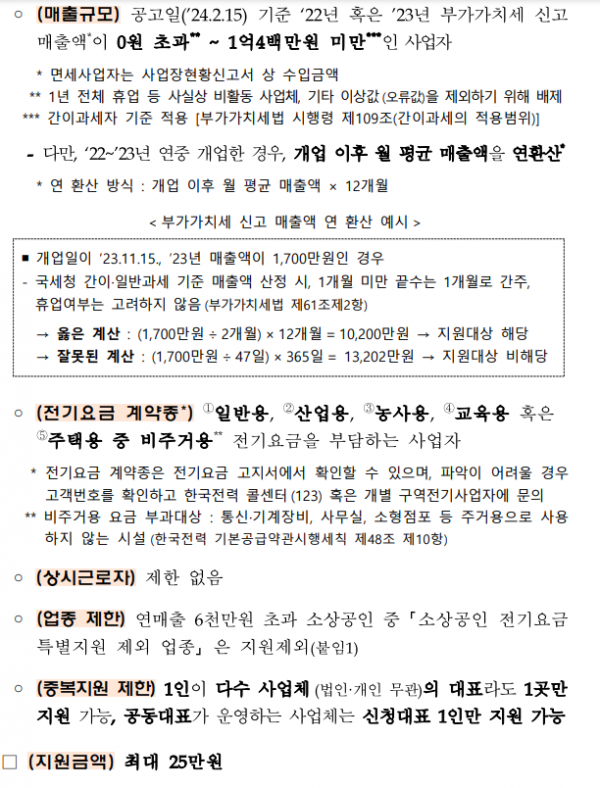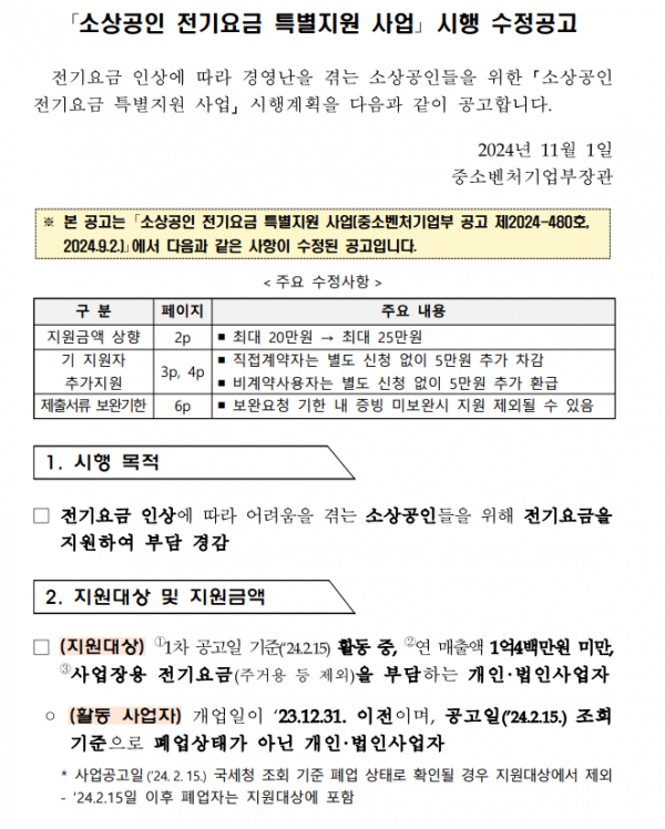 〖공고〗「소상공인 전기요금 특별지원 사업」 시행 수정공고