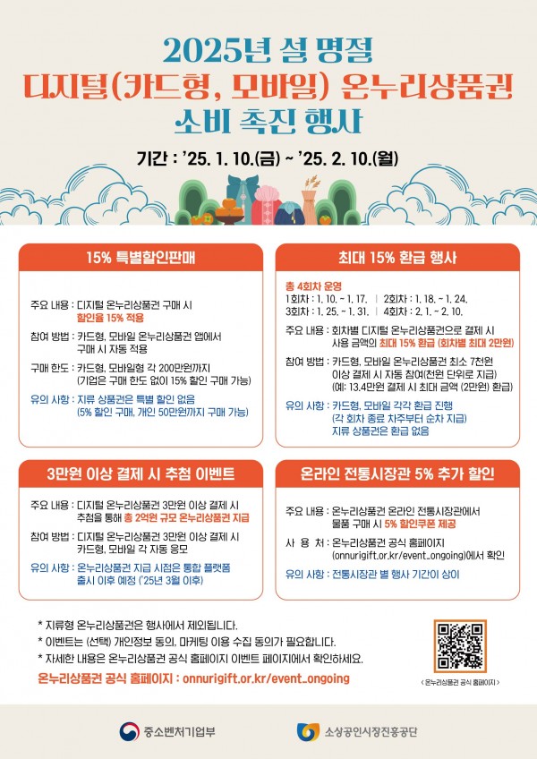 [알림] 2025년 설 명절 디지털(카드형,모바일) 온누리 상품권 소비촉진행사 (25.1.10-25.2.10)