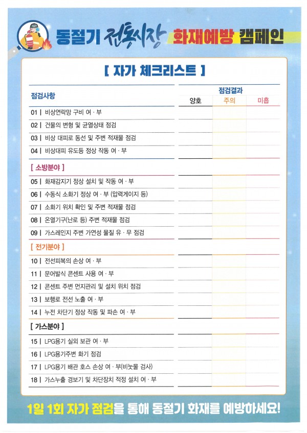1일 1회 자가점검을 통해 동절기 화재를 예방하세요