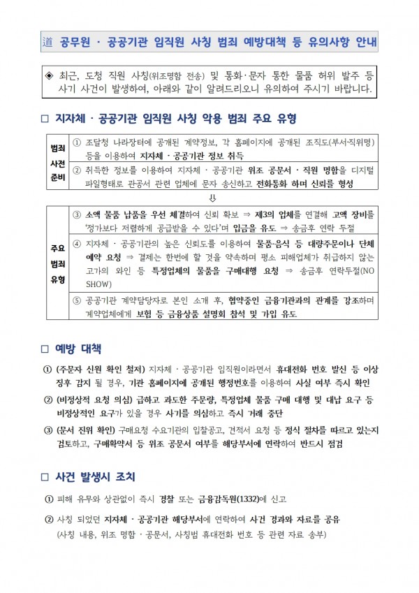 [알림] 경기도 공직자 사칭 사례 공유 및 유의사항 안내