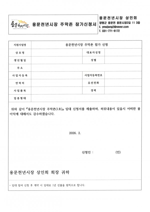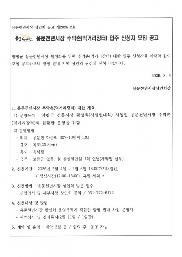용문천년시장 주막촌(먹거리장터) 입주 신청자 모집 공고